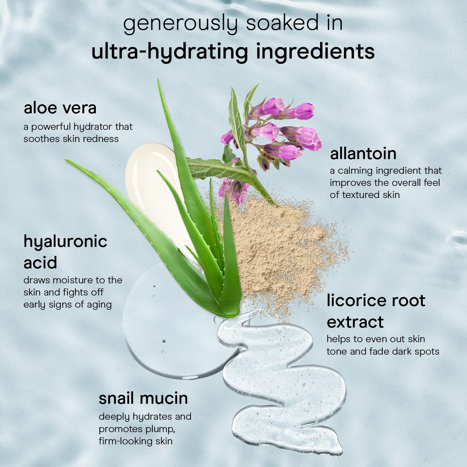 - Soak Up The Glow: This hydration face mask is our take on the Korean sheet mask - but even better! Our face mask sheet is soaked in snail mucin, hyaluronic acid, and aloe vera, wrapping your skin in a moisture blanket for a dewy, luminous glow.