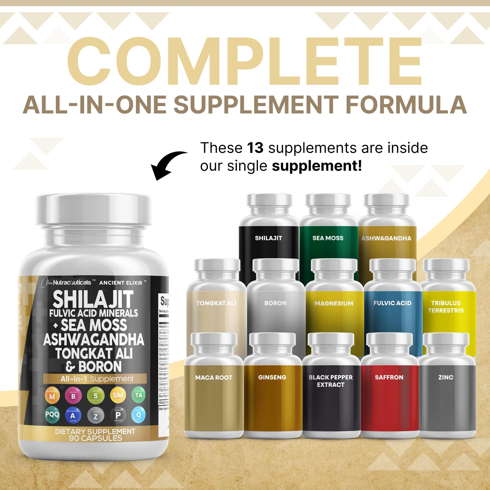 Shilajit Supplement for Men with Sea Moss, Tongkat Ali, Ashwagandha, Boron, Zinc, CoQ10, PQQ - Fulvic Acid Capsules - Energy Support - 90 Count - Resin, Gummy & Powder Alternative