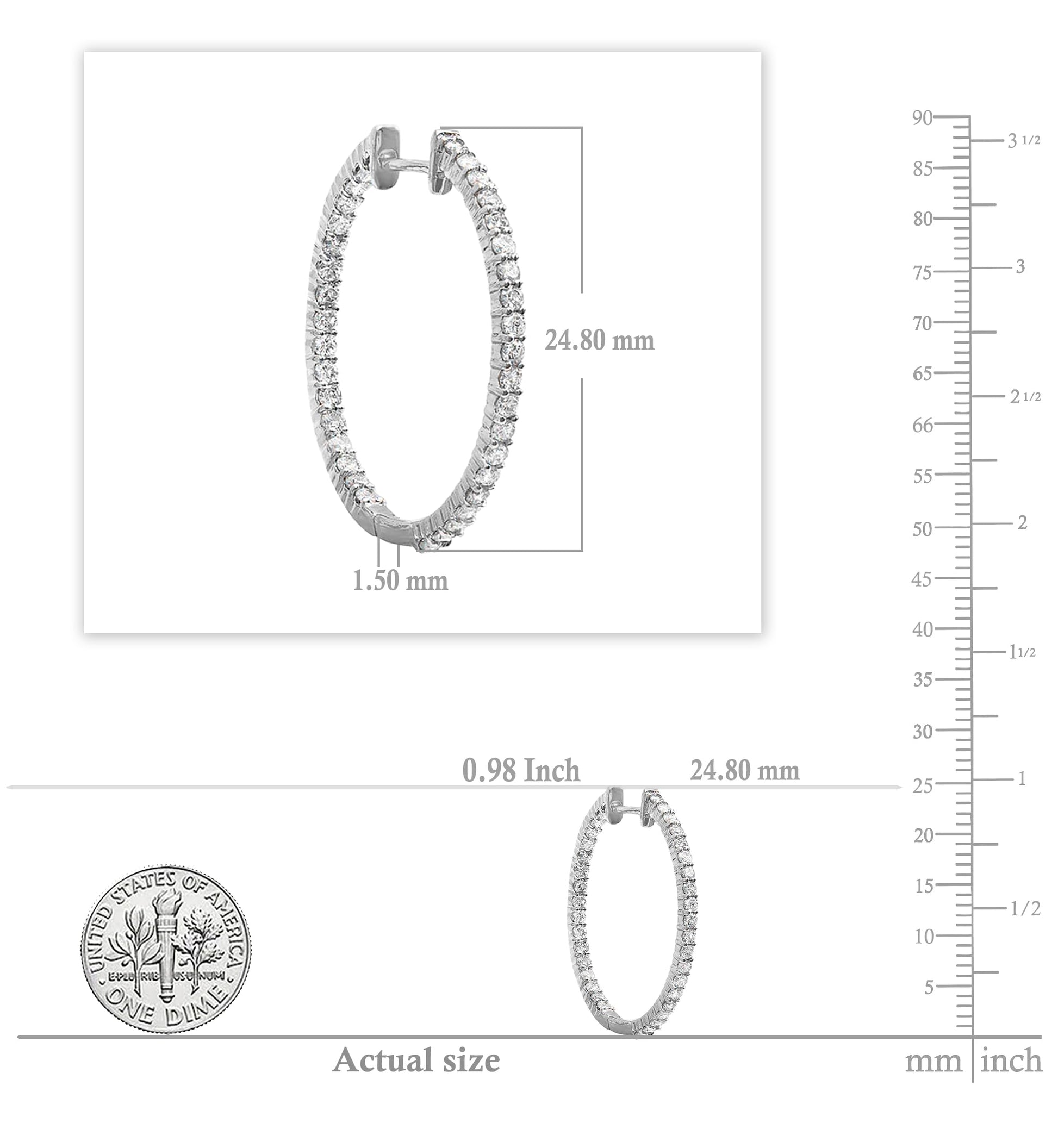 Dazzlingrock Collection 0.90 Cttw Round Lab Grown White Diamond Women In and Out Hoop Earrings, 18K Solid White Gold