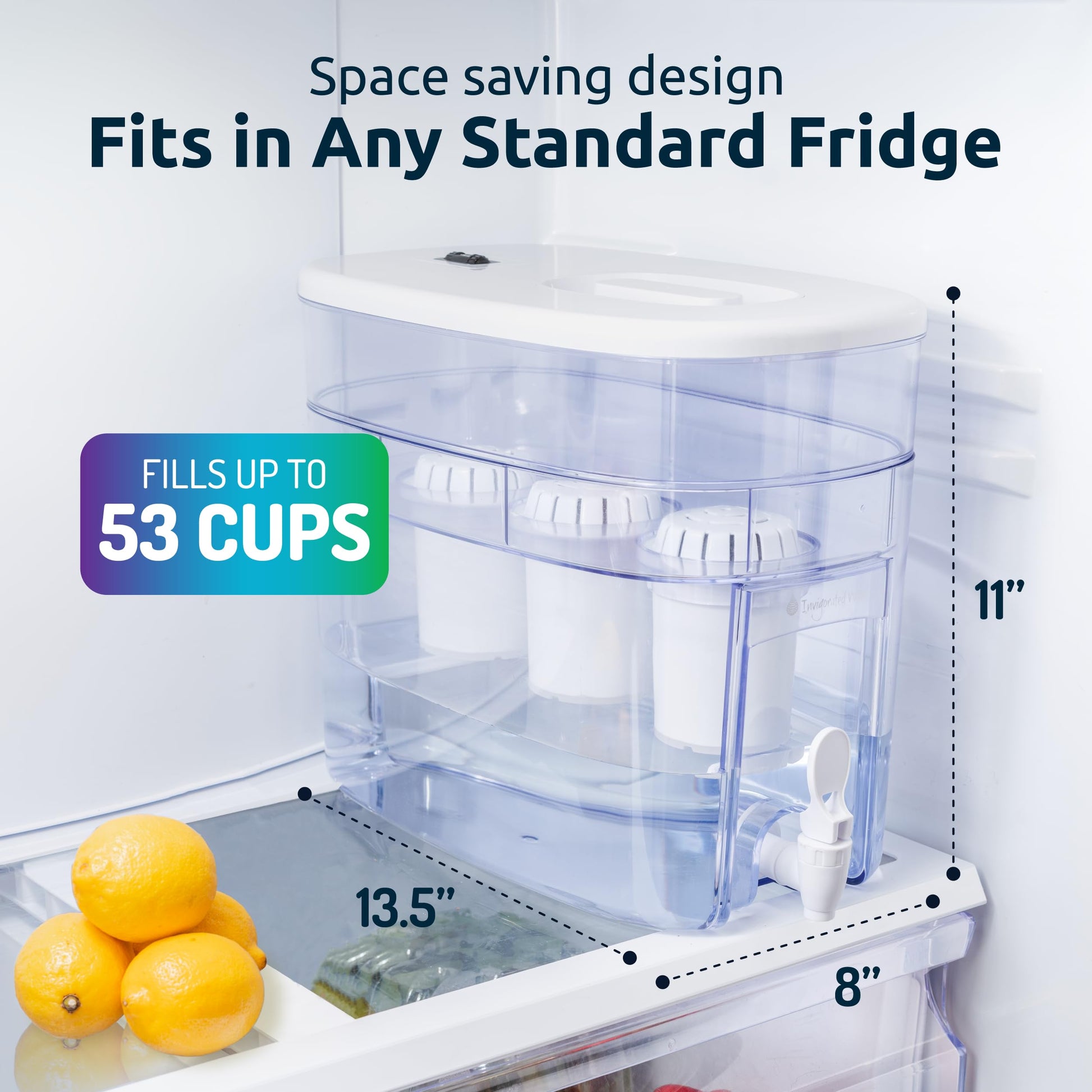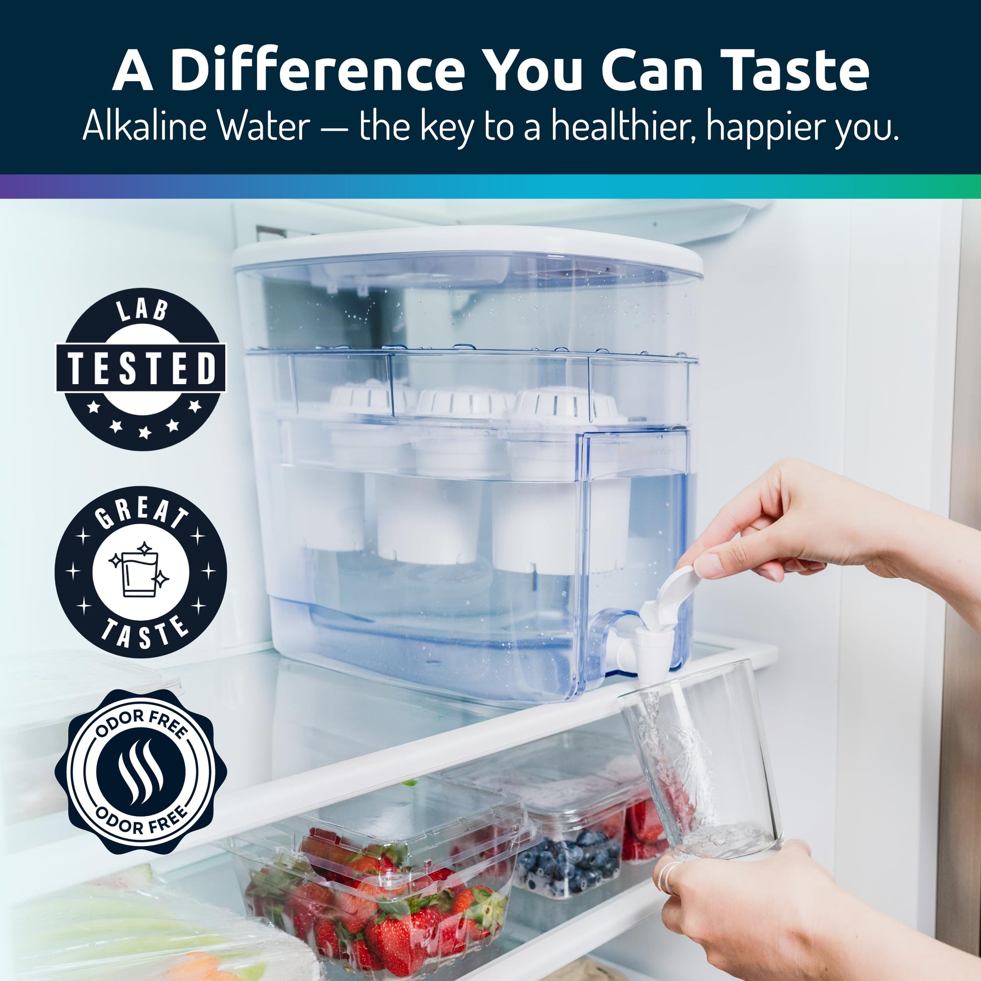 Alkaline Countertop Water Filter Dispenser, Large 52-Cup Capacity, Mineralized Alkaline Water, BPA-Free, 96 Gallons/Filter (White, 3 Filters Included)