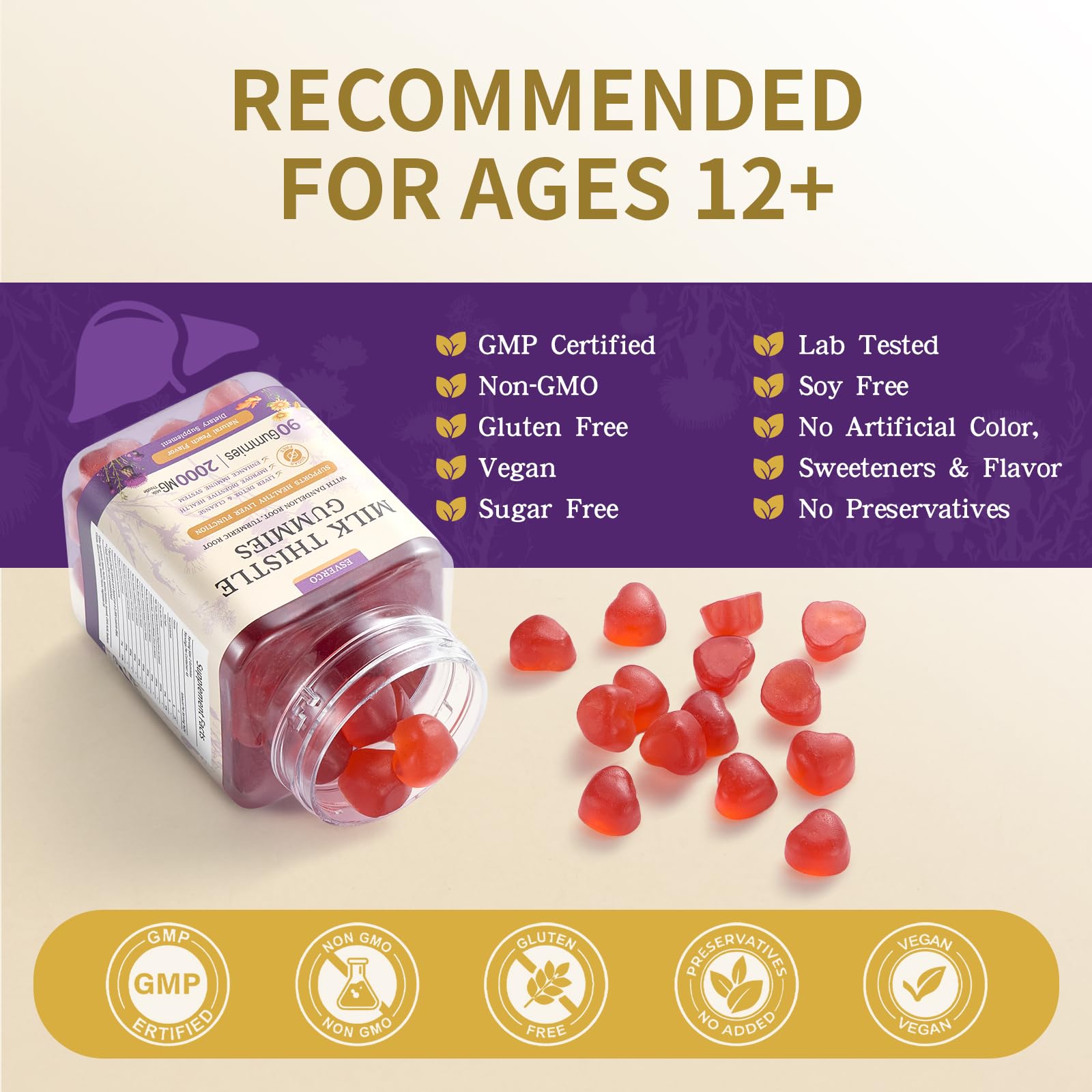 - [ESVERCO MILK THISTLE GUMMIES] ESVERCO specializes in providing consumers with delicious, healthy gummies that contain 2000mg of pure Milk Thistle, 1000mg of Dandelion, 1000mg of Turmeric, and 600mg of Kudzu per serving, to help maintain normal liver function. No need to swallow hard pills. Designed for men and women, it is convenient for them to replenish the nutrients their body needs anytime, anywhere.
