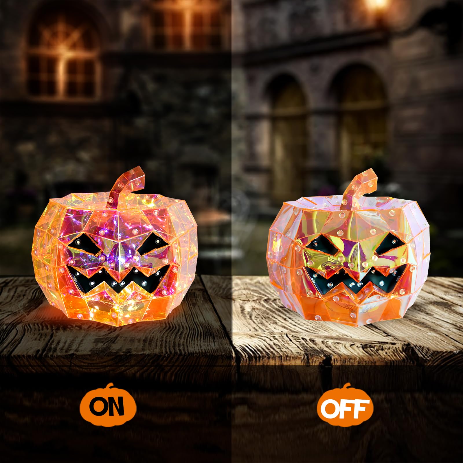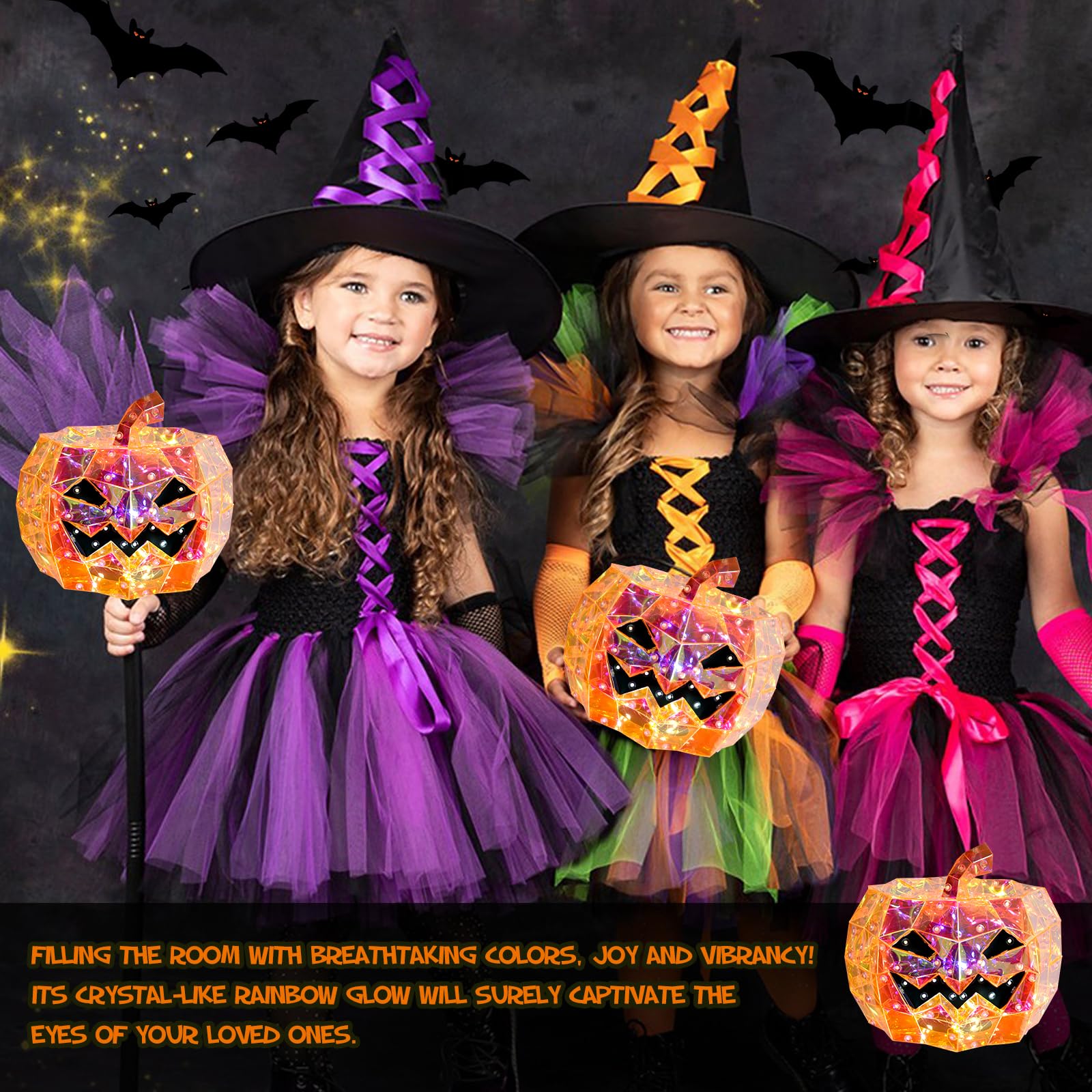 - Enchanting Design: Beautiful prismatic iridescent pumpkin decoration that creates a mesmerizing rainbow effect when light hits its surface, adding a magical touch to your Halloween decor