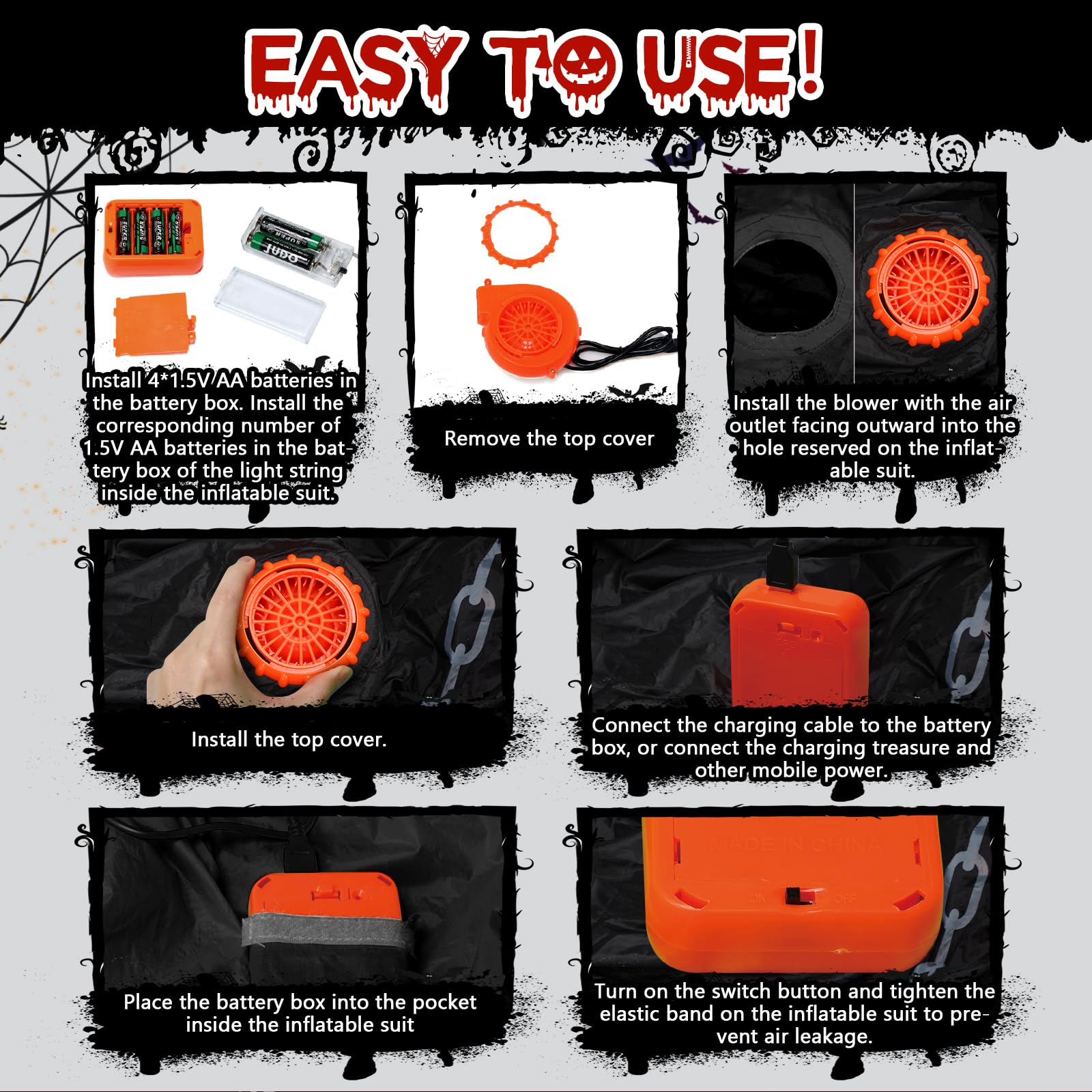 - ⚉Easy to Use⚉Skirfy Halloween costume is easy for you to use, you just need to turn on the blower after wearing, then the wind will soon fill the clothes; And you need to put the batteries on the belt, not in your pocket, or the device will overheat and burn your legs
